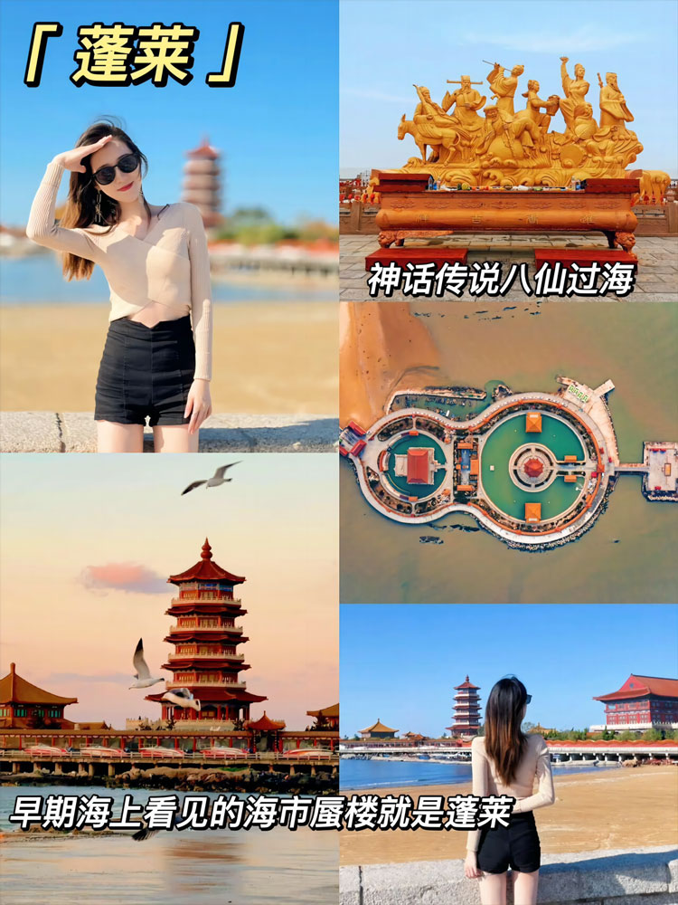 🚩第二天:青岛出发前往蓬莱-蓬莱景点(5A三仙山-八仙雕塑广场-坐帆船出海-登州古市和所城里).晚上住蓬莱